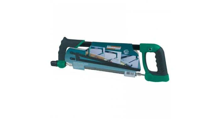 Robuuste zaagbeugel met instelbare zaaghoek (0 – 45 en 90º) en geïntegreerd magazijn voor (reserve)zaagbladen. Wordt geleverd met 18-tands zaagblad voor kunststof, 24-tands zaagblad voor metaal en 8-tands zaagblad voor hout.