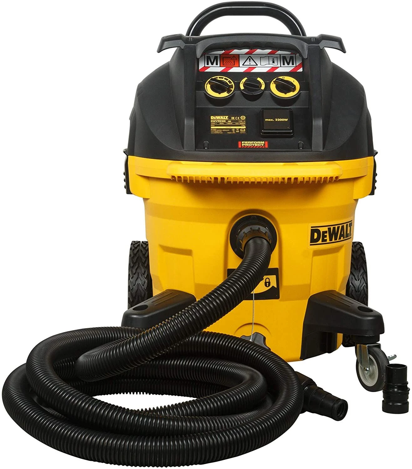 Dankzij de telescopische handgreep en de grote achterwielen kan deze stofzuiger makkelijk verplaatst worden over de werf