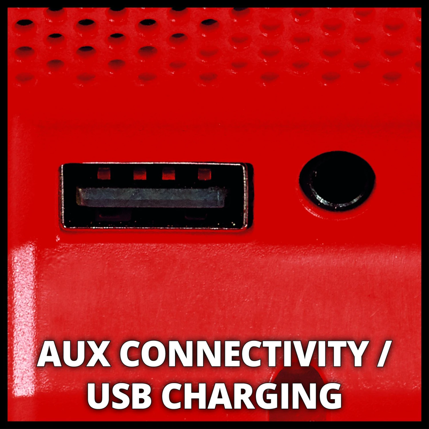 De accu Speaker TC-SR 18 Li BT Solo maakt een eenvoudige verbinding mogelijk met alle Bluetooth apparaten, zoals smartphones of tablets mogelijk dankzij het gebruik van Bluetooth versie 5.0. Daarnaast heeft de speaker een AUX-aansluiting voor het aansluiten van mp3-spelers of smartphones en een usb-aansluiting voor het opladen van een smartphone, tablet of mp3-speler. Het intuïtieve bedieningspaneel maakt eenvoudige bediening mogelijk. Als onderdeel van de Power X-Change prodcutlijn kunnen alle hoogwaardige lithium-ion accu’s uit de Power X-Change productlijn worden gecombineerd met de accu speaker. De speaker wordt geleverd zonder accu en lader. Deze zijn apart verkrijgbaar, bijvoorbeeld als praktische starterkit.