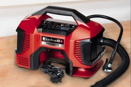 De Einhell TE-AC 18/11 hybride compressor Pressito kan worden bediend met zowel een voedingskabel als een 18 Volt systeembatterij uit de Power X-Change-serie. De