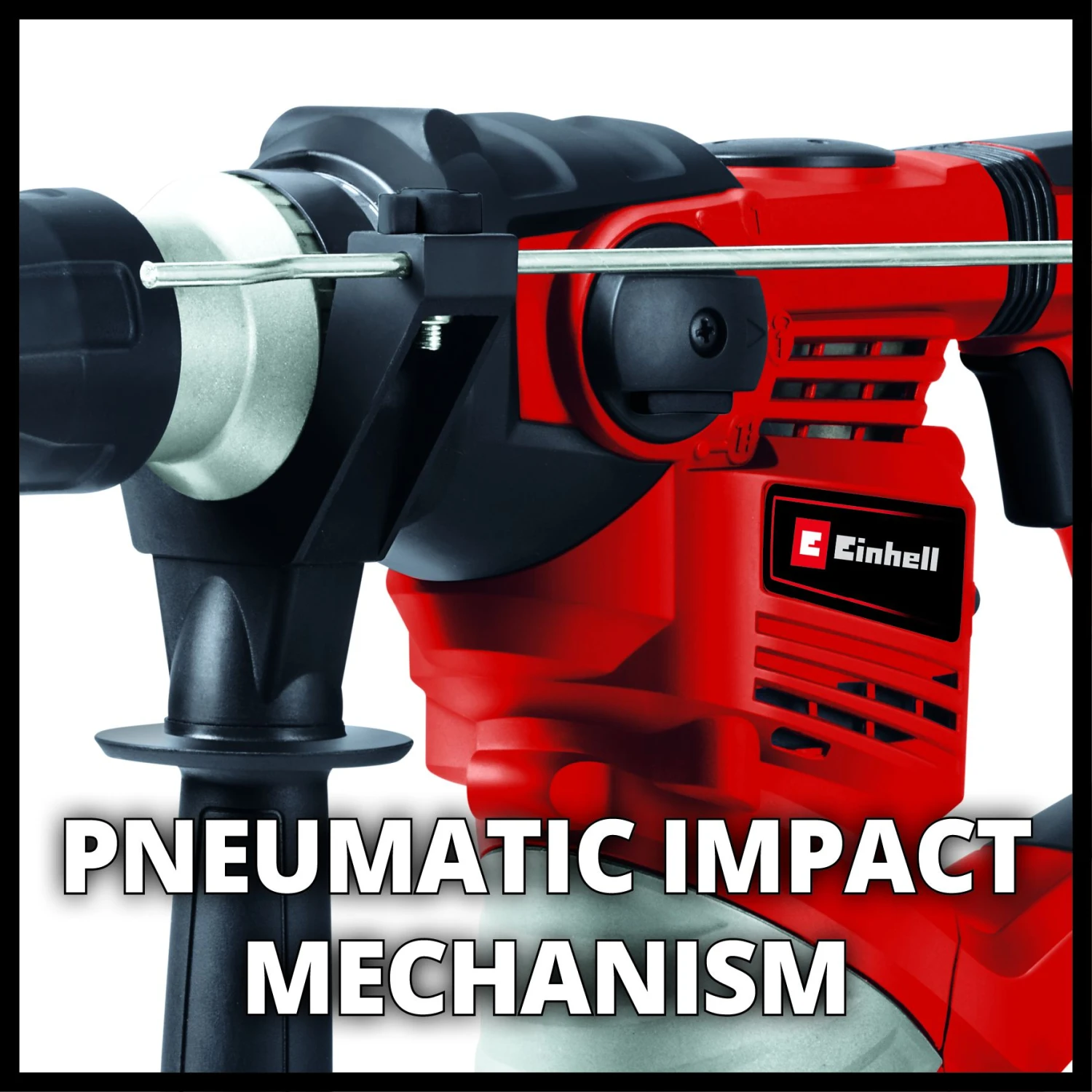 De Einhell TC-RH 1600 elektrische boorhamer is een zeer betrouwbare, veelzijdige en krachtige machine. Zeer geschikt bij boor-, hak- en verschillende sloopwerkzaamheden. De machine biedt je vier basisfuncties, namelijk: boren, hamerboren en beitelen met en zonder beitelslot. De motor heeft een vermogen van 1600 Watt en een slagkracht van maar liefst 4 Joule, waarmee verscheidene werkzaamheden moeiteloos kunnen worden uitgevoerd. Veiligheid door overbelastings slipkoppeling Om de veiligheid te vergroten beschikt deze boorhamer over een overbelastings slipkoppeling. Zodra de boor of beitel vast komt te zitten, zal deze veiligheidsfunctie inschakelen. De boor wordt tijdelijk gestopt, zodat een overbelasting voorkomen wordt. Snel wisselen van functionaliteit Door een handige schakelaar wordt het je heel eenvoudig gemaakt om te wisselen tussen de verschillende functionaliteiten waar deze boorhamer over beschikt. Samen met de SDS-Plus adapter kan er snel geschakeld worden tussen verschillende werkzaamheden. Optimale prestaties door een anti-trilhandgreep en extra handgreep Met een speciaal ontworpen anti-trilsysteem is het mogelijk om optimale prestaties te leveren tijdens het uitvoeren van je werkzaamheden. Je hebt veel grip en met een tweede handgreep worden je armen aanzienlijk minder snel vermoeid. Dit wordt tevens voorkomen door het lichte gewicht van de elektrische boorhamer. De kop van deze machine is namelijk gemaakt van kwalitatief hoogwaardig aluminium wat een lange tijd mee zal gaan en weinig weegt. Meer veiligheid en precisie met dieptestop Een van de functionaliteiten van deze elektrische boorhamer is de mogelijkheid om vooraf een bepaalde diepte voor de boor of beitel in te stellen. Als je meerdere keren op eenzelfde diepte wenst te boren of beitelen, biedt deze functionaliteit de uitkomst. Dit maakt het uitvoeren van boor- en beitelwerkzaamheden nog eenvoudiger. Handige opbergkoffer Door de meegeleverde opbergkoffer is het zeer eenvoudig om de boorhamer overal mee naar toe te nemen. Handig als je bijvoorbeeld elders aan het werk wilt gaan of je elektrische boorhamer op een veilige wijze op wilt bergen. De belangrijkste specificaties van de machine: – Vermogen: 1600W – Aansluiting: 230 V – 240 V / 50 Hz – Onbelast toerental: 800 t/min. – Slagfrequentie: 3900 s/min. – Slagkracht: 4,0 J – Voor boren, klopboren en beitelen (met klopfunctieschakelaar en rotatiestopschakelaar) – Boorcapaciteit in beton/steen: max. 32mm – SDS-Plus – 2e handgreep met draaibeveiliging – Robuuste aluminium aandrijfkast – Overbelastings slipkoppeling – Speciaal handvat voor het absorberen van vibraties – Softpainted – Geleverd in kunststof opbergkoffer – Deze machine maakt deel uit van de Einhell Classic-productlijn – 2 jaar fabrieksgarantie