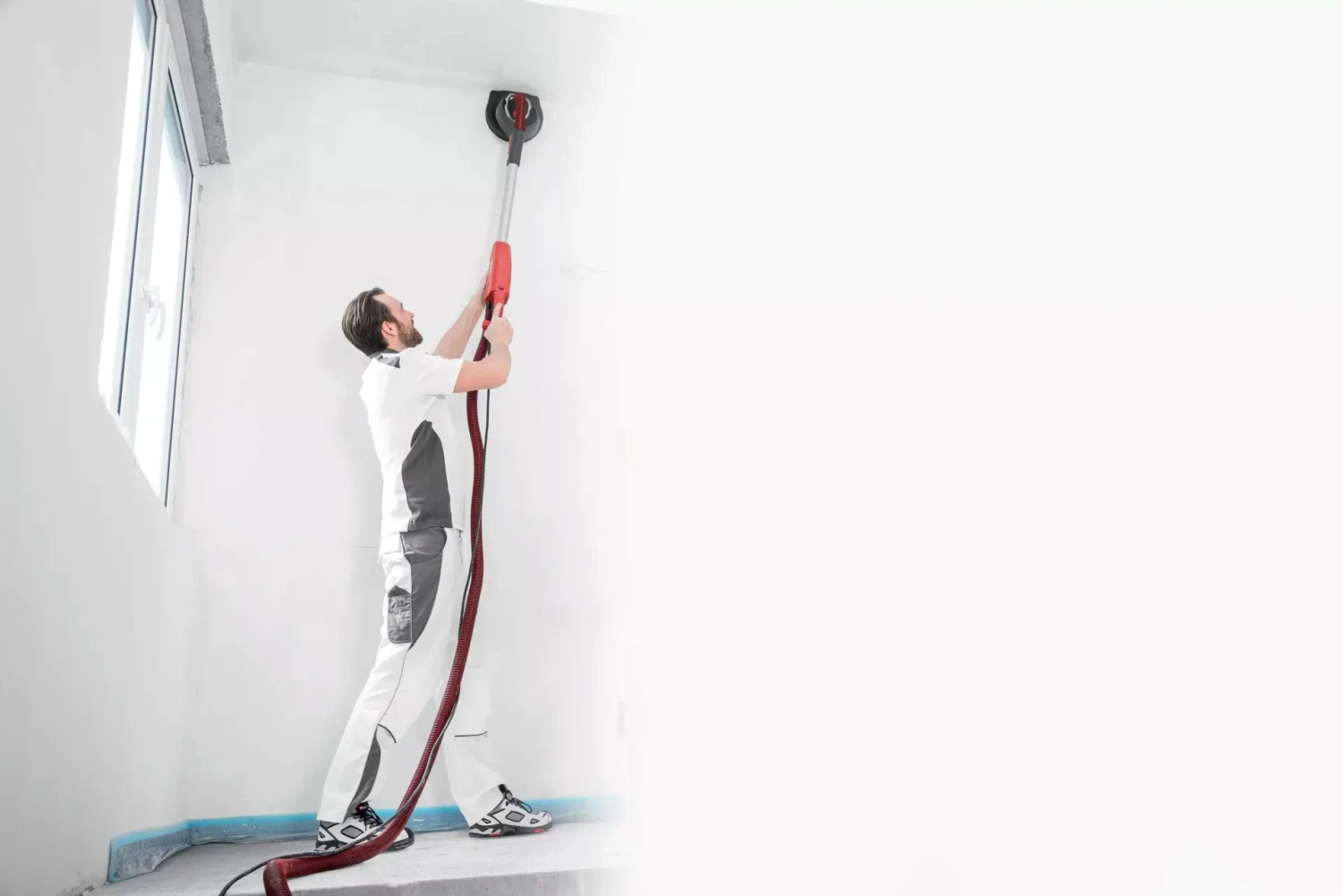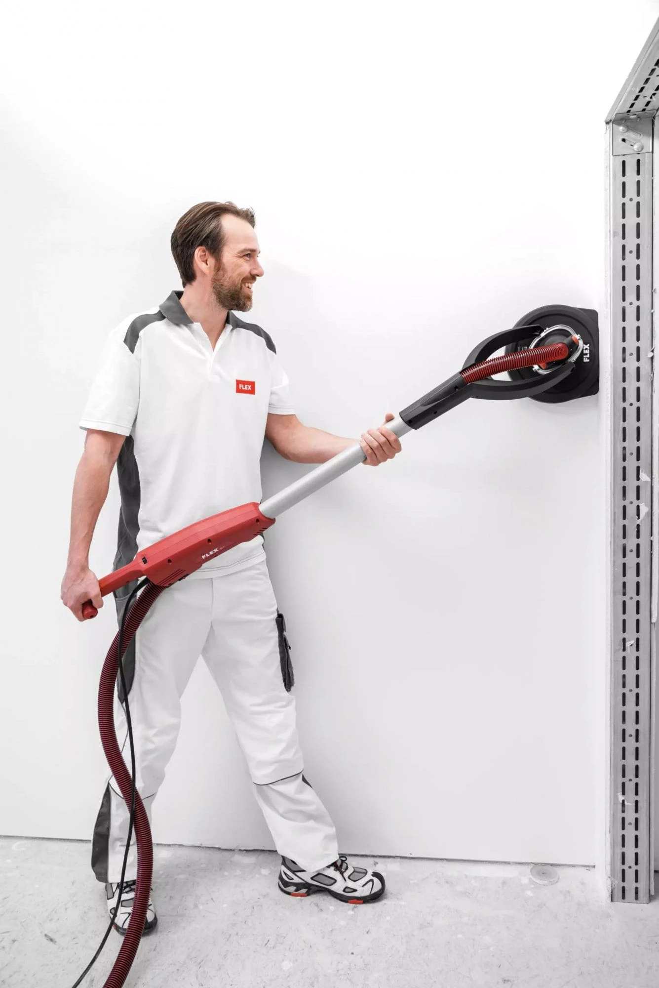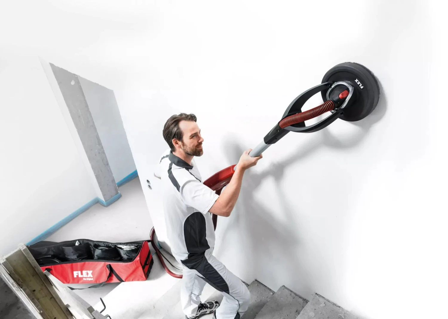 De cardanische lagering van de schuurkop zorgt voor een hoge flexibiliteit en optimale aanpassing aan elke glooiing en hoek bij het schuren van wanden en plafonds.