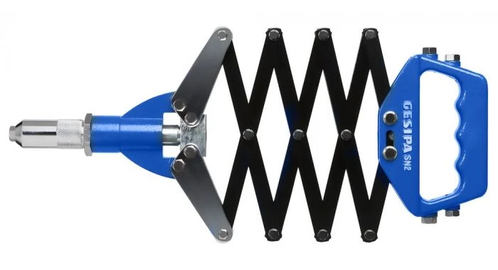 De harmonicatang GESIPA SN-2 is een professionele tang voor het plaatsen van blindklinknagels. Te gebruiken voor zowel reparatie doeleinden als in de productie. De tang wordt geleverd compleet met neusstukken voor de popnagels die met deze tang geplaatst kunnen worden. Het huis van de GESIPA SN-2 is gemaakt van gegoten aluminium.