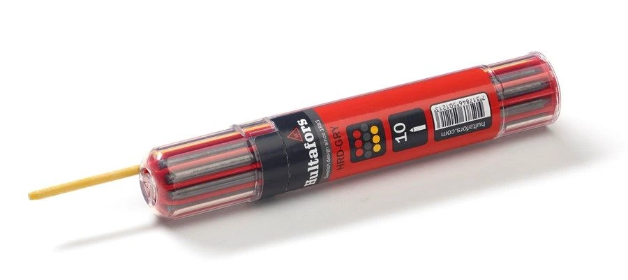 10 Hultafors navullingen grijs, rood en geel voor het Hultafors vulpotlood in slimme houder met draagclip.