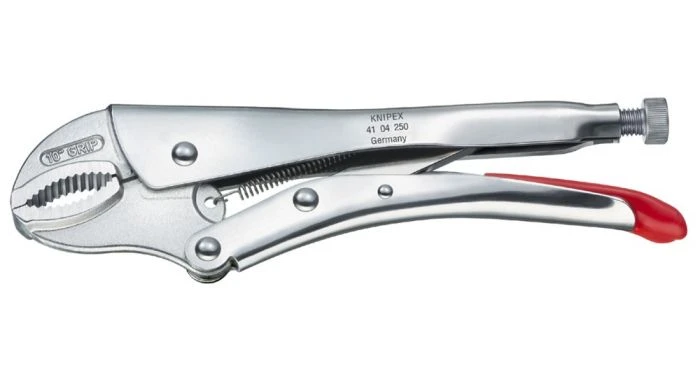 Houdt rond, vlak en profielmateriaal goed vast. Zeer beslastbaar. Met stelschroef en ontgrendelingshendel. éénhandbediening. Grote spankracht door kniehefboomoverbrenging. Lichaam: hoogvast verenstaal. Ingezette grijpbekken uit Chroom-Vanadiumstaal, gesmeed. Knipex Klemtang voor rond materiaal 250 mm
