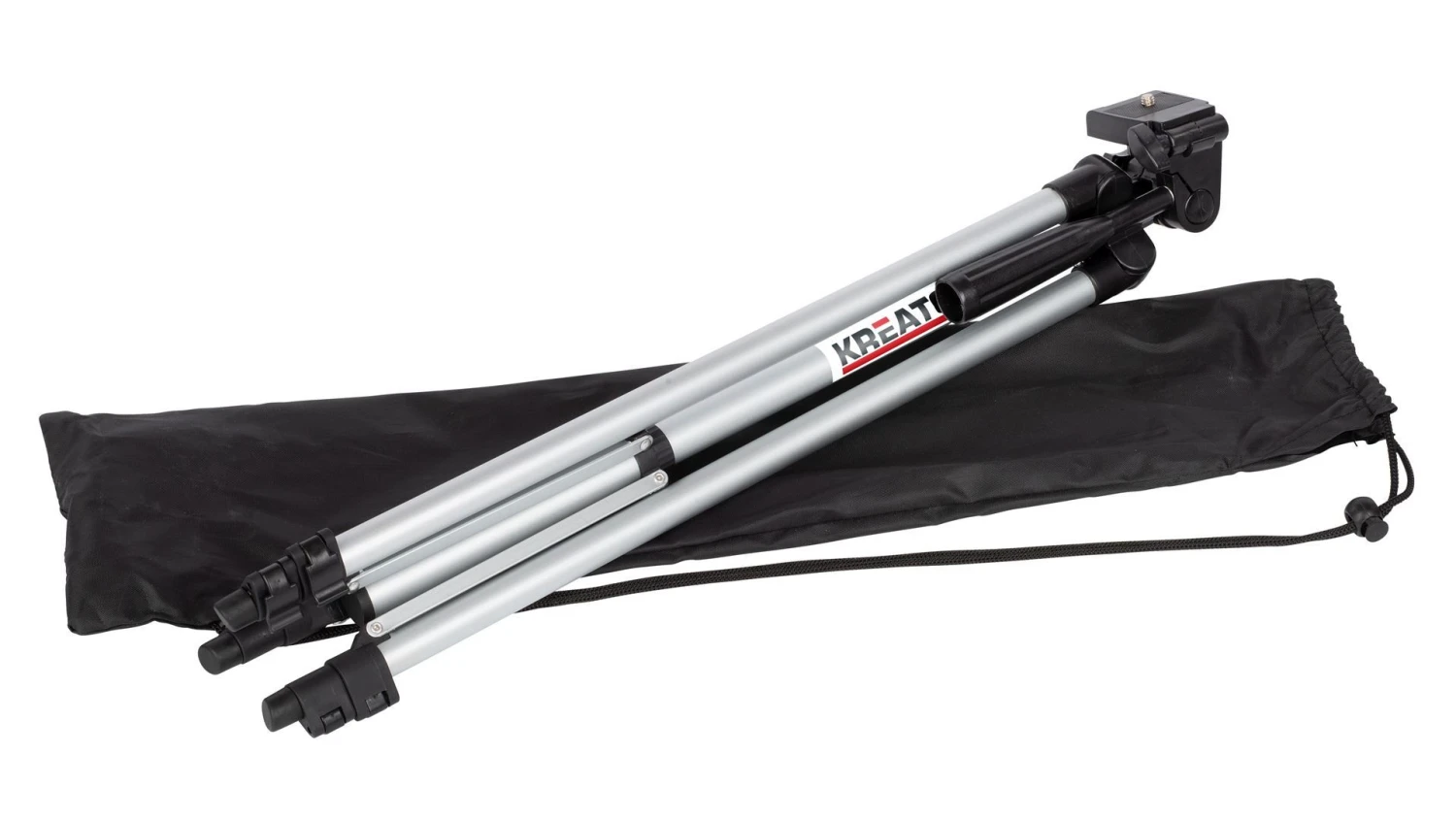 Op dit aluminium statief van Kreator klik je je laser vast, zodat hij stabiel op een hoogte tot max. 152 cm staat. Je kan ook kiezen voor een hoogte van 50 cm of 83 cm, wat jou het beste uitkomt. Dit telescopische statief heeft een standaardschroef en is dus compatibel met vele andere tools. Zo kan je er bv. ook een fototoestel op bevestigen. Je neemt het makkelijk mee in de bijgeleverde opbergzak.