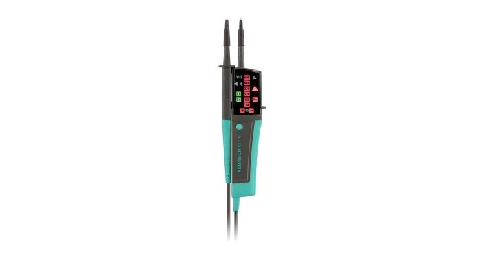 De Kyoritsu KT170 is een spanningstester voor het testen van AC en DC spanningen tot 690V. De gemeten waarde wordt weergegeven via een LED weergave. De tester is voorzien van zelftest en schakelt automatisch aan en uit. Naast de standaard spanningstest heeft de meter ook de mogelijkheid om continuïteit en fase rotatie te meten. Ook beschikt de meter over een single pole test.