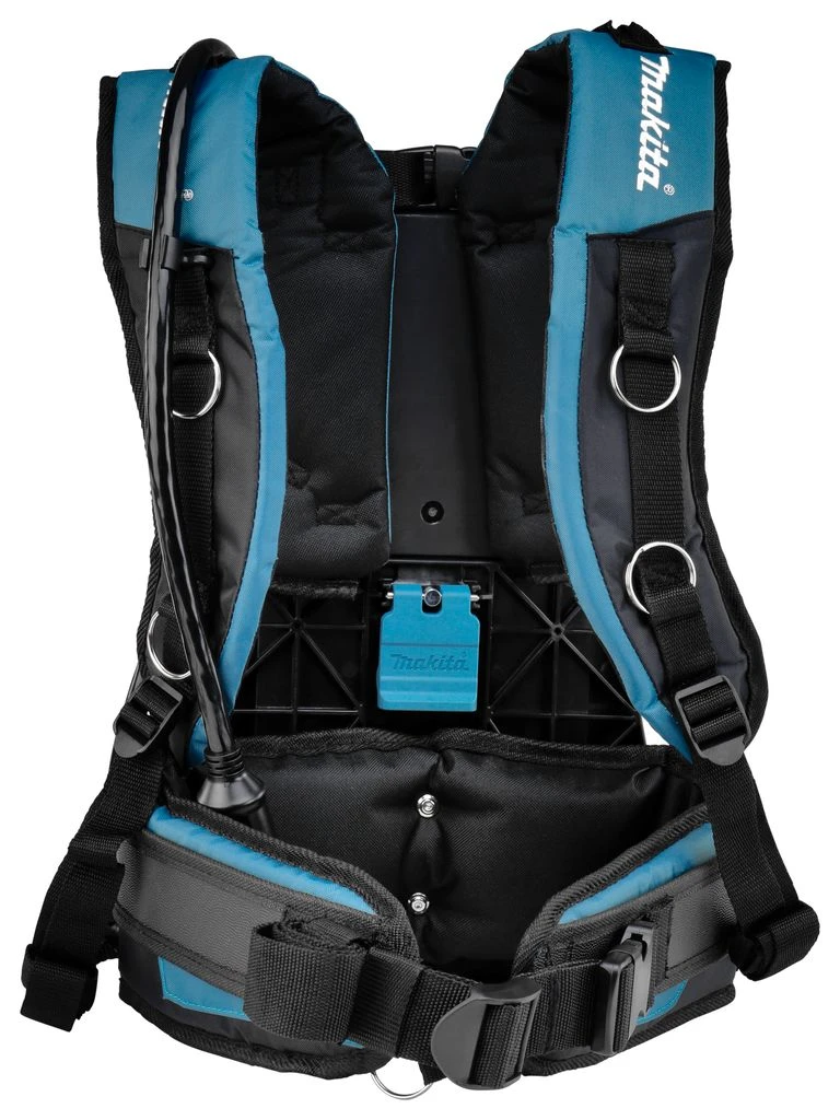 Makita heeft een accustation ontwikkeld. In dit accustation passen vier losse LXT accu’s en die passen weer op 250 machines. Het harnas is verstelbaar en past daardoor altijd. Ruggedragen accu station, voor 4 x accu en standaard geleverd zonder adapter om rechtstreeks aan te sluiten op “conecctor type” machines, Inclusief 4 x 18v 5.0ah accu en duosnellader in Mbox.