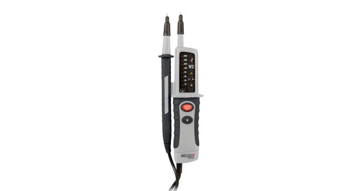 De EM700 is een betrouwbare en robuuste spanningstester met een bereik van 12 tot 690 volt. De meetpennen kunnen aan elkaar gekoppeld worden zodat de afstand tussen de 2 pennen passend is voor het snel meten van WCD’s. De ingebouwde LED zaklamp maakt het meten in donkere omgevingen eenvoudig. De beschermkappen zijn afneembaar bij metingen in diepere contacten. De EM700 geeft voltage, polariteit en draairichting weer.
