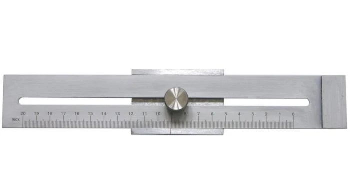 Afschrijfliniaal 20 cm. Roestvrijstaal, verchroomd. Schrijfkant gehard in kunststof etui.