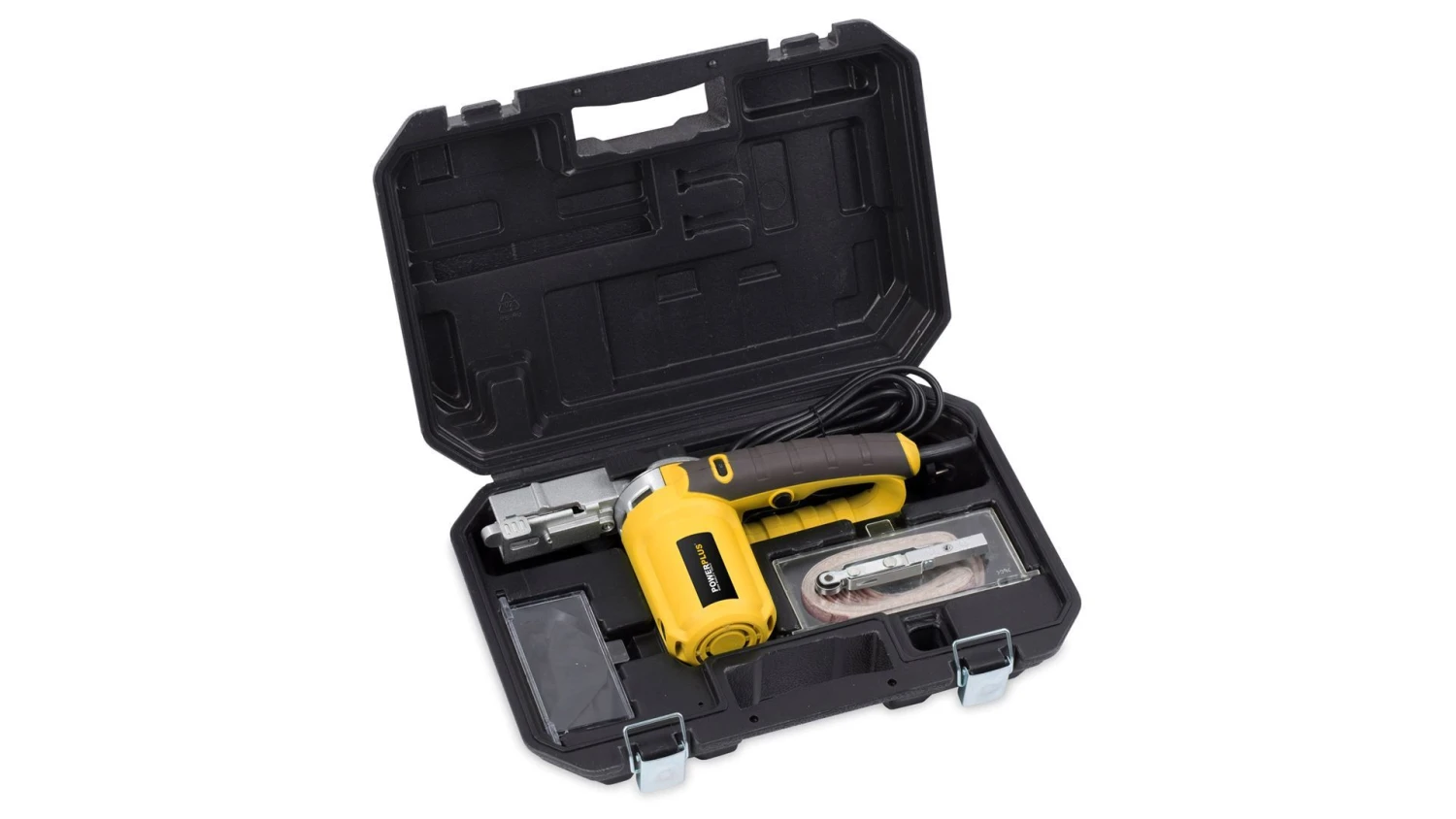 Deze powervijl kan je gebruiken voor het renoveren, restaureren, schuren en afbramen van hout, kunststof en metalen voorwerpen. De smalle schuurbanden zorgen ervoor dat je ook de moeilijkst bereikbare plekken kan bewerken.