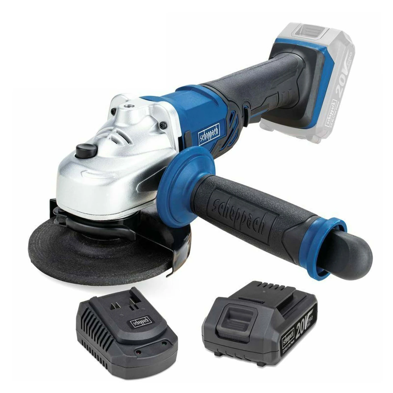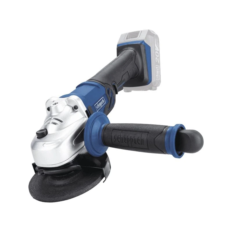 Alle gangbare doorslijp- en slijpschijven met een diameter van 115 mm kunnen worden gebruikt. De schijven worden verwisseld met behulp van een spindelslot. De sleutel die hiervoor nodig is, is geïntegreerd met de handgreep, zodat u hem altijd bij de hand heeft zodra een schijf moet worden verwisseld. Met 8000 omwentelingen per minuut betekent dit hoge prestaties voor allerhande activiteiten. Of het nu gaat om snijden, slijpen of polijsten met een rubberen schijf, de 20 V haakse slijpmachine van Scheppach geeft altijd het maximale.