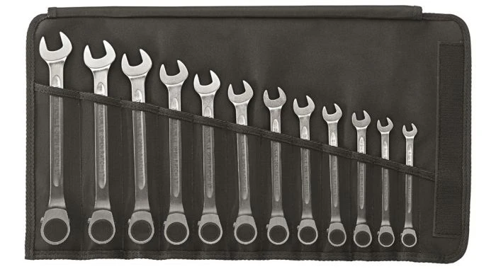 12x Steek-/ringratelsleutel, maat: 8; 9; 10; 11; 12; 13; 14; 15; 16; 17; 18; 19 mm