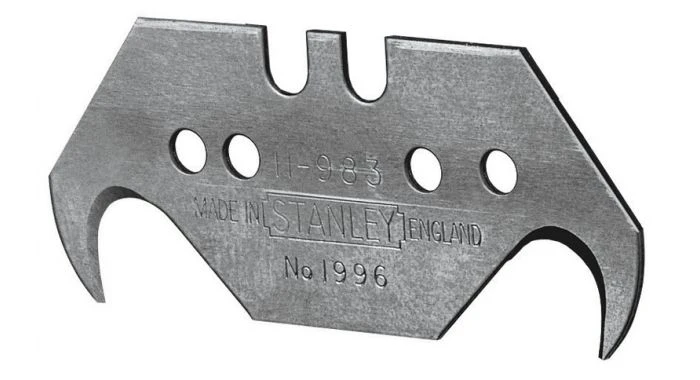 Haakmesje met scherpe punt voor doorboren en snijden van vloerbedekking en plastiek, verpakkingsmateriaal.