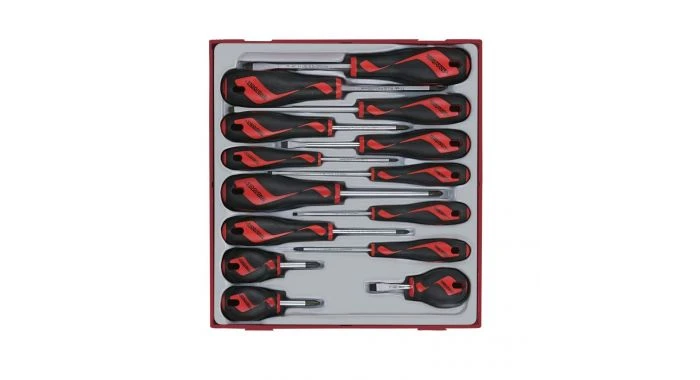 Set van 14 schroevendraaiers plat, PH en PZ in tray.