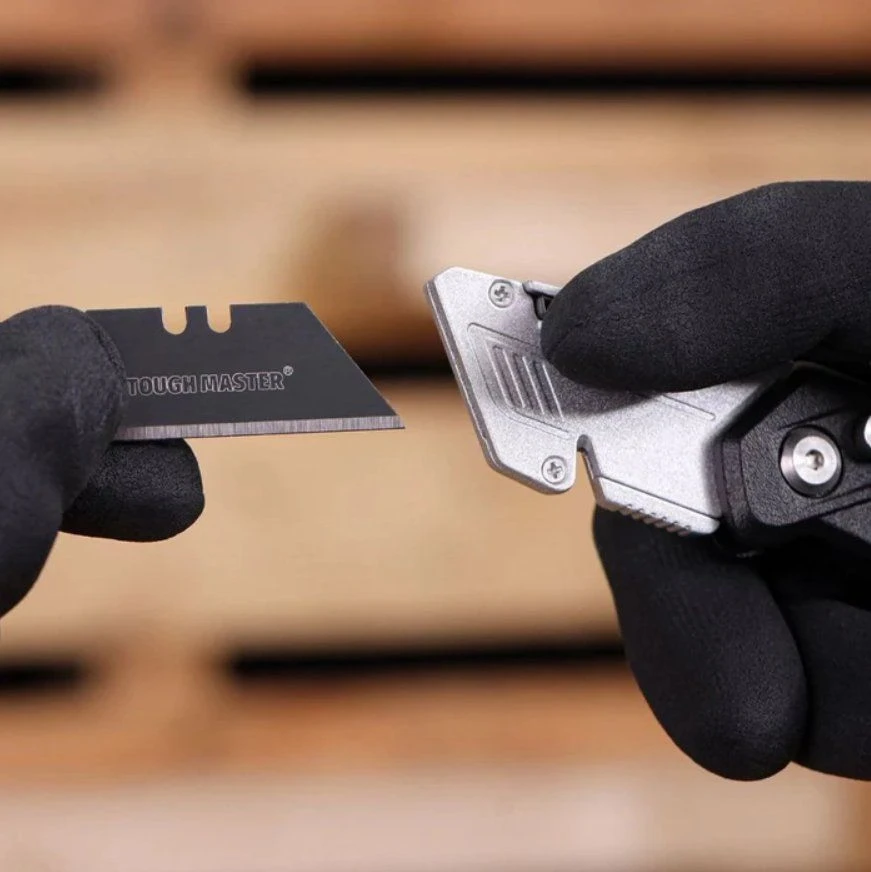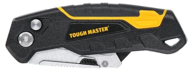 Zakmessen zijn een van de handigste gereedschappen voor elke vakman, zoals dit TM-UFK174 vouwmes van TOUGH MASTER®. We denken graag dat dit het beste opvouwbare mes van het VK is: deze stanleymes heeft een duurzame behuizing van aluminiumlegering voor betrouwbaar gebruik en een lange levensduur; de rubberen handgreep zorgt voor een comfortabele, veilige grip. De duurzame messen zijn gemaakt van versterkt SK2-staal van topkwaliteit, nauwkeurig ontworpen voor hoge prestaties en hebben een speciale coating om roest te weerstaan. Ons TM-UFK174 opvouwbare mes is zeer veilig in gebruik en transport, omdat het mes ook vast zit als het niet in gebruik is. Deze opvouwbare stanleymes kan in 3 hoeken worden gevouwen: 90°, 135° en 180°, en het eenvoudige mesvergrendelingsontwerp met één knop vergrendelt het mes voor veilig en efficiënt snijden. Dankzij de brede duimsteun, dit opvouwbare kokermes biedt een stabielere, veiligere bediening. Het vervangen van de messen van dit mes is eenvoudig dankzij het snelle mesontgrendelingsmechanisme: druk gewoon op de knop en verwijder het mes, plaats het nieuwe mes en laat de knop los. Dit opvouwbare mes heeft ook 3 extra messen in het handvat: als je een nieuw mes nodig hebt, trek je gewoon de opbergklep eruit en verwijder je het reservemes. Deze vouwsnijder is ideaal voor het snijden van veel materialen, zoals tapijt, papier, plastic, leer en karton enz. Als je een nieuwe nodig hebt, trek je gewoon de opbergklep eruit en verwijder je het reservemes. Deze vouwsnijder is ideaal voor het snijden van veel materialen, zoals tapijt, papier, plastic, leer en karton enz. Als je een nieuwe nodig hebt, trek je gewoon de opbergklep eruit en verwijder je het reservemes. Deze vouwsnijder is ideaal voor het snijden van veel materialen, zoals tapijt, papier, plastic, leer en karton enz.