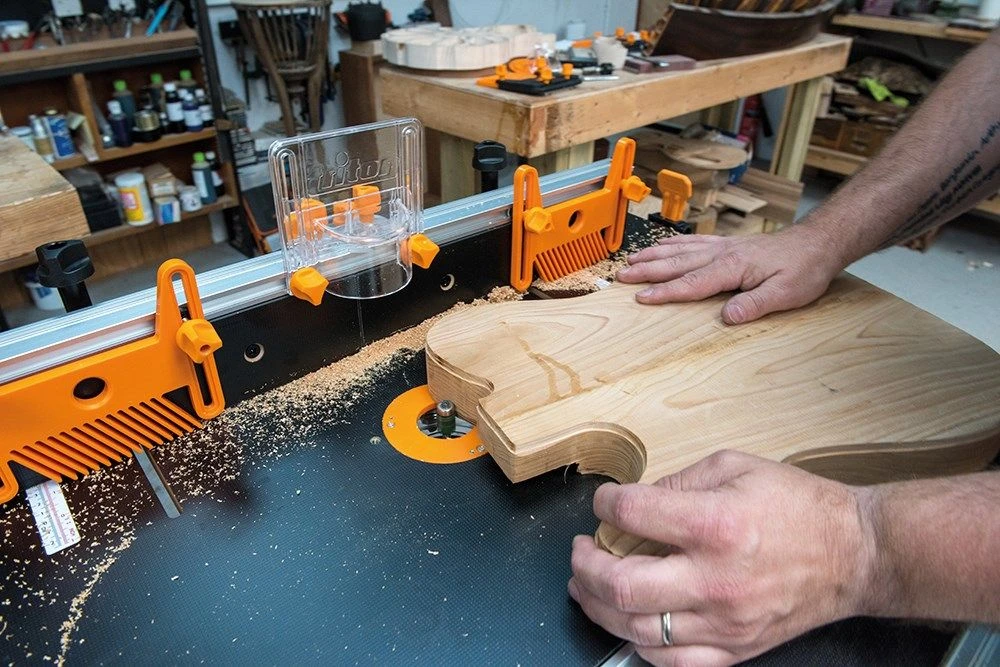 Creëer een volledige freestafel met gebruik van een Triton bovenfrees (MOF001, TRA001 of JOF001). Professionele resultaten bij vormen, schaven, schulpen, malfrezen en groeffrezen. Het TWX7 workcenter is voorzien van een ingebouwde, geïsoleerde netstroomaansluiting met knie-stopschakelaar. Gemakkelijk in te klappen voor transport en opberging. TWX7RT001 freestafel module met aluminium hoofdgeleider, verstelbare zijgeleiders, microstellers, geleider afstandsstukken, beschermkap, verticale en horizontale drukelementen en stofpoortaansluiting. Hoogwaardige materialen en onderdelen verzekeren een duurzaam gebruik.