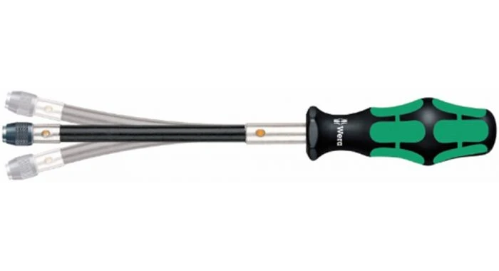 Hoogwaardige bit-handhouder met flexibele schacht van Wera. Meerdelige Kraftform-handgreep voor snel en ergonomisch schroeven. Kraftform Plus: Harde gripzones voor een hoge werksnelheid, zachte gripzones voor een hoge draaimomentoverdracht. Met snelwisselfunctie om snel bits te kunnen wisselen. Zeskantige wegrolbescherming verhindert telkens wegrollen op de werkplek. Geschikt voor plaatsing van bits met 1/4” buitenzeskant-aandrijving conform DIN ISO 1173-C 6,3.