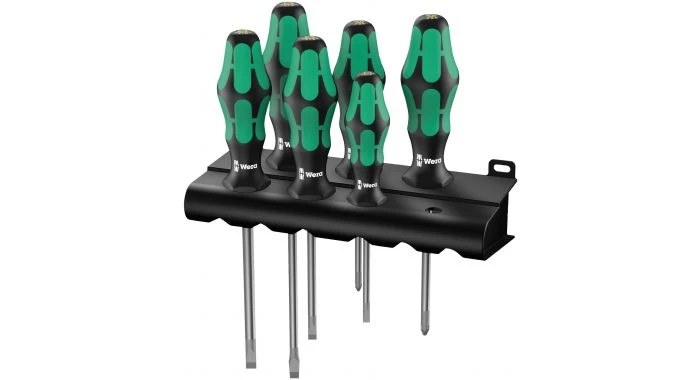 6-delige schroevendraaierset met Kraftform Plus-handgreep om prettig en ergonomisch verantwoord te kunnen werken en blaren en schuurplekken te voorkomen. Harde gripzones voor een hoge werksnelheid, zachte gripzones voor een hoge draaimomentoverdracht. De Lasertip-punt grijpt zich vast in de schroefkop en voorkomt wegglijden. Zeskantige wegrolbescherming verhindert telkens wegrollen op de werkplek. Met greepcodering om het gereedschap sneller te kunnen vinden en sorteren. Wordt geleverd met handig rack waarin de schroevendraaiers overzichtelijk kunnen worden opgeborgen.